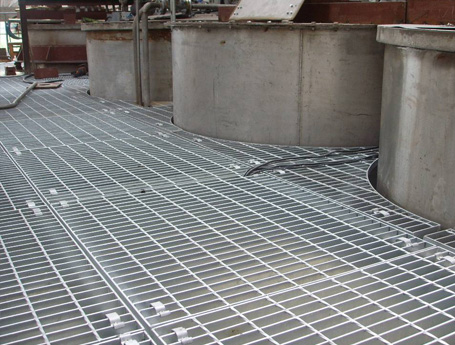 污水廠用鋼格板   污水處理廠用鋼格柵其特點為:   1、強度高:牢固的網(wǎng)格壓焊結(jié)構(gòu)使其具有高承載;   2、結(jié)構(gòu)輕:便于吊裝等特點;   3、外形美觀,經(jīng)久耐用:熱浸鋅表面處理使其具有相當(dāng)好的防腐能力,表面光澤美觀; ···